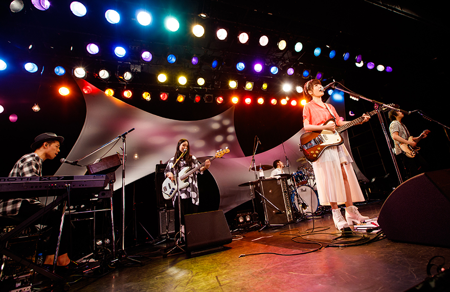 デビュー曲『Season』が演奏され、会場のボルテージは急上昇!大きな手拍子が起こる。そして、「Oh〜、Oh〜」というリフレインが特徴の未発表曲『Never Ending Crawl』を披露!未発表曲にもかかわらず、会場はより一層盛り上がりを見せ、彼女のエモーショナルな歌声とアグレッシヴなバンドの演奏が、会場をグイグイと引っ張っていく。さらに畳み掛けるように、『夏の花』を演奏。これからの季節にぴったりの爽快なポップナンバーで、ライブはいよいよクライマックスへ。まだまだ流れは止まらず、さらに未発表曲『アイセイハローのすべて』が続けて歌われる。耳に残るキャッチーなサビが、よりフロアの気持ちを掴み、大きな手拍子が鳴り止まない。