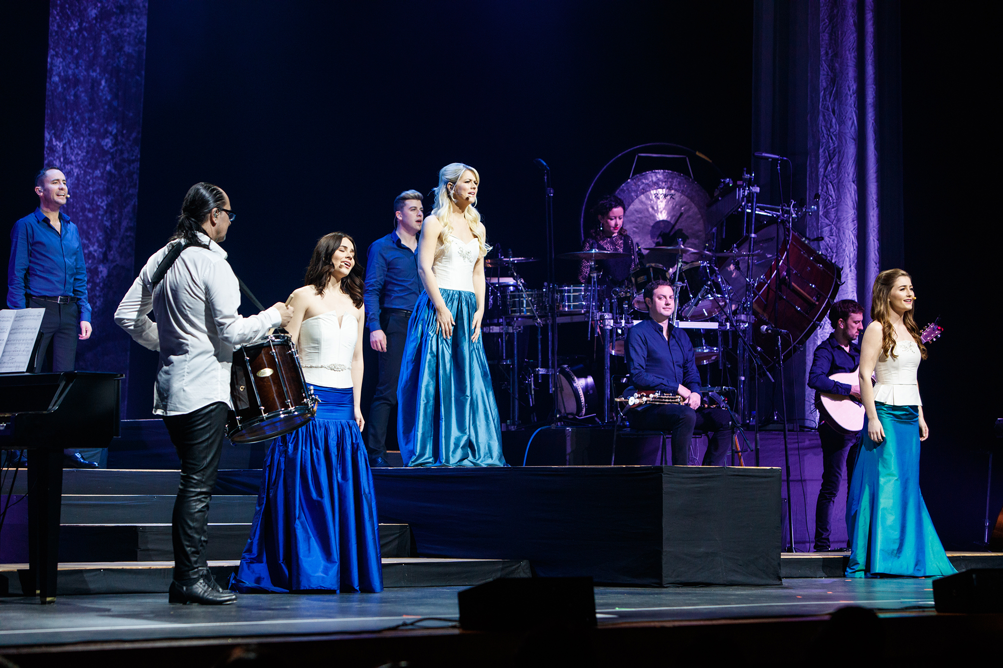 心地よい余韻に浸っていると、ステージには太鼓のメンバーが登場して、悠々と、そしてユーモラスなドラミングで盛り上げて、会場を一気に晴れやかな祭りの空気に彩っていった。男性コーラスがアイリッシュダンスで快活なリズムを添えると、観客は大きく手拍子し笑顔で歓声を上げる。次々と場面が変わるような流れに、思わずテンションが上がってしまう。その高揚感をさらに引っ張り上げるように、ケルティック・ウーマンの代表曲であり、歌の力が冴える『ザ・ヴォイス』へと持っていく流れは圧巻だ。